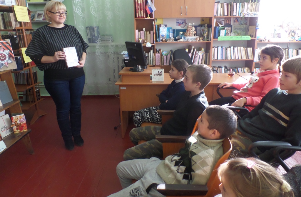 23 февраля мы широко и всенародно отмечаем военно-патриотический праздник - День защитника Отечества, мы отмечаем его с достойной торжественностью и особой теплотой. 23 февраля - день воинской славы России, которую российские войска обрели на полях сражений. Изначально в этом дне заложен огромный смысл - любить, почитать и защищать свою Отчизну. В этот день, для читателей учеников 7-8 классов, в Ярковской сельской библиотеке состоялся час памяти «О подвиге, о доблести, о славе!». Библиотекарь Щербанюк Татьяна Геннадьевна рассказала ребятам об и