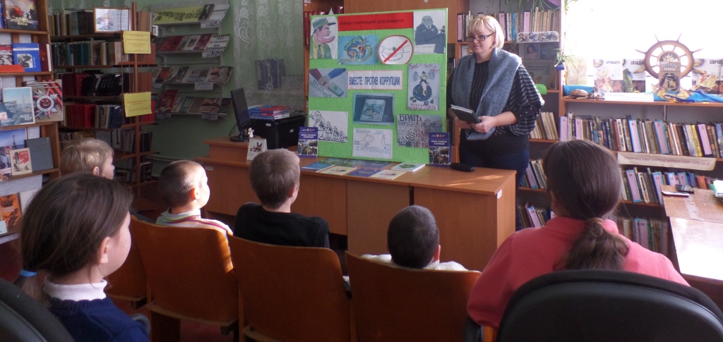 Цитатой известного английского философа Томаса Гобса начался правовой час в Ярковской сельской библиотеке. 9 декабря согласно ООН является международным днем борьбы с коррупцией. Библиотекарь Щербанюк Татьяна Геннадьевна подготовила для читателей - учеников 7-8 классов слайд- презентацию «Вместе против коррупции», а так же презентовала информационный стенд с высмеивающими коррупцию рисунками «Борьба с коррупцией - дело каждого!».
